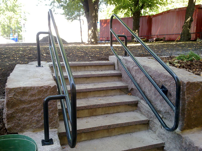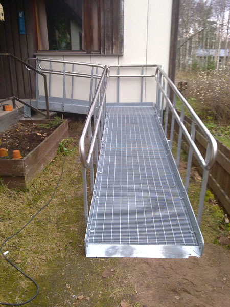 Teräksisiä porrasrunkoja, kaiteita ja portteja